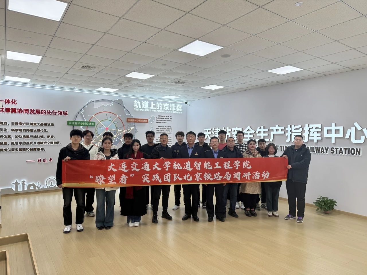 “瞭望者”实践团队于2月17日至20日赴北京铁路局天津铁路物流中心及关联企业开展寒假社会实践活动。在学院党委的统筹部署下,团队18名师生通过实地调研、技术交流、岗位体验和项目对接,探索智能信息技术与铁路行业融合发展的新路径,为信息类专业学生职业发展注入新动能。